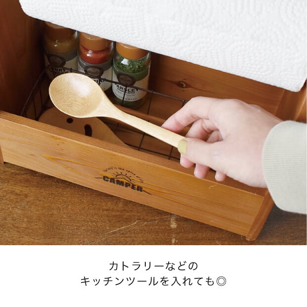 スパイスや調味料はもちろん、キッチンツールアイテムも入るサイズ感。