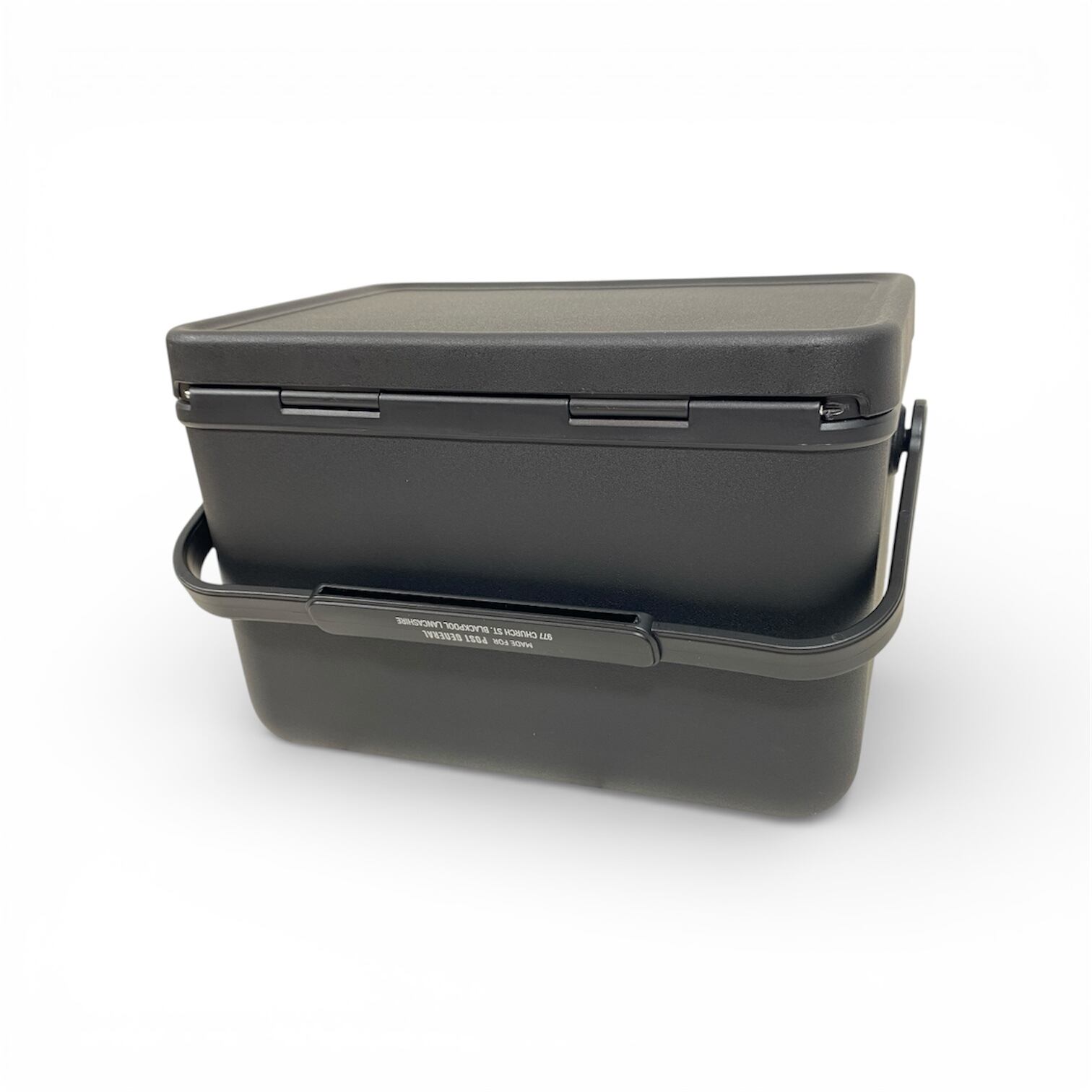 シボ入りの樹脂表面で、シンプルながらも存在感のある雰囲気のクーラーボックスです。