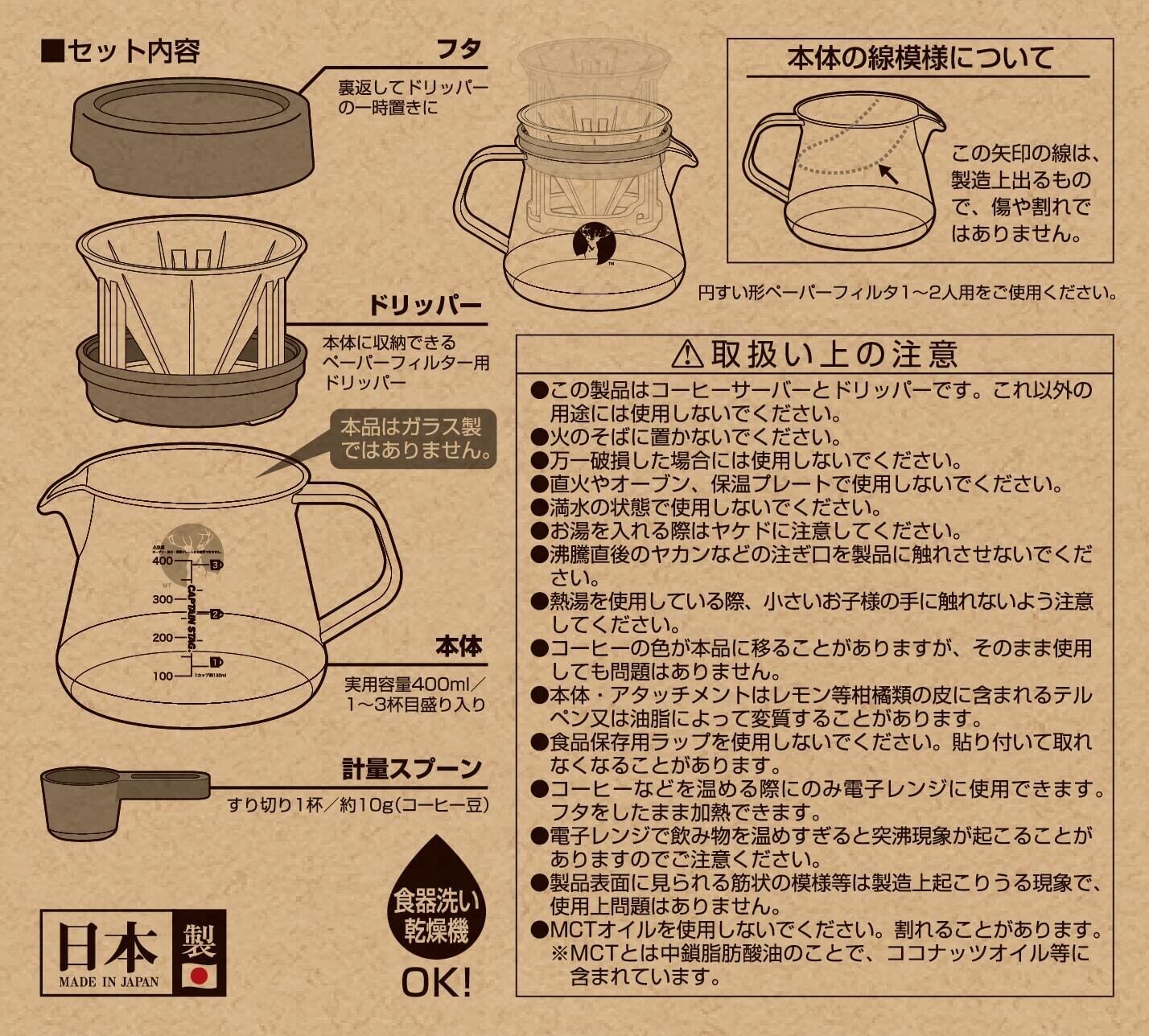 仕様:電子レンジOK(※ドリッパー除く)、食器洗い乾燥機OK、コーヒー1~3杯用、軽量スプーン付き(コーヒー豆約10g)、メッシュケース付き