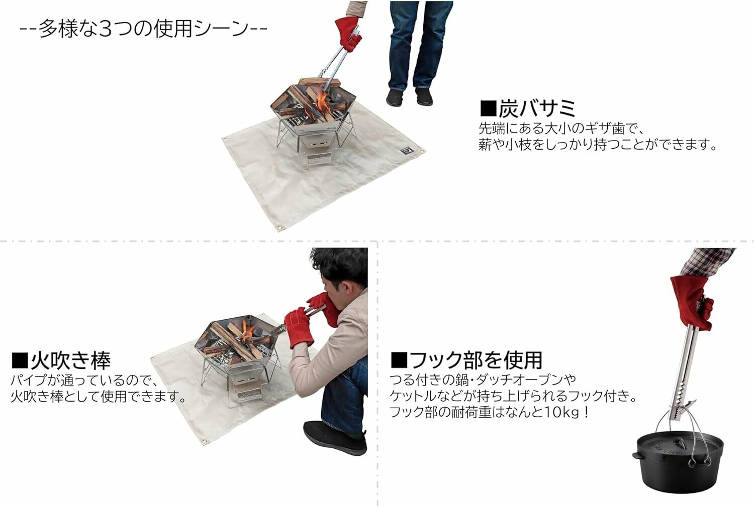 アウトドア BBQ 炭バサミ トング 火吹き棒 ふいご 火吹きバサミ ステンレス製