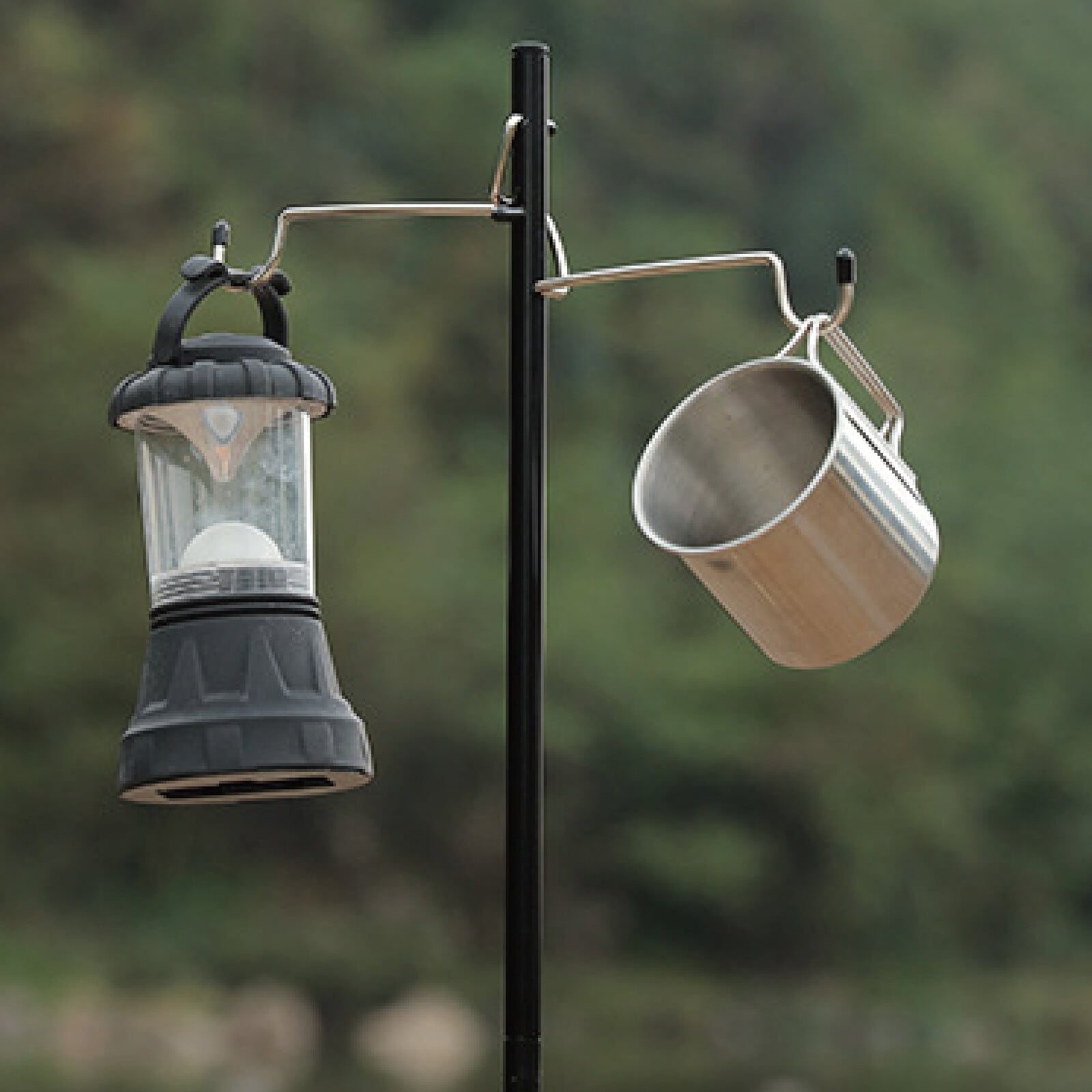 機能性抜群のWフック設計。片方にランタンをかけながらちょっとした小物も同時に吊るすことができます。